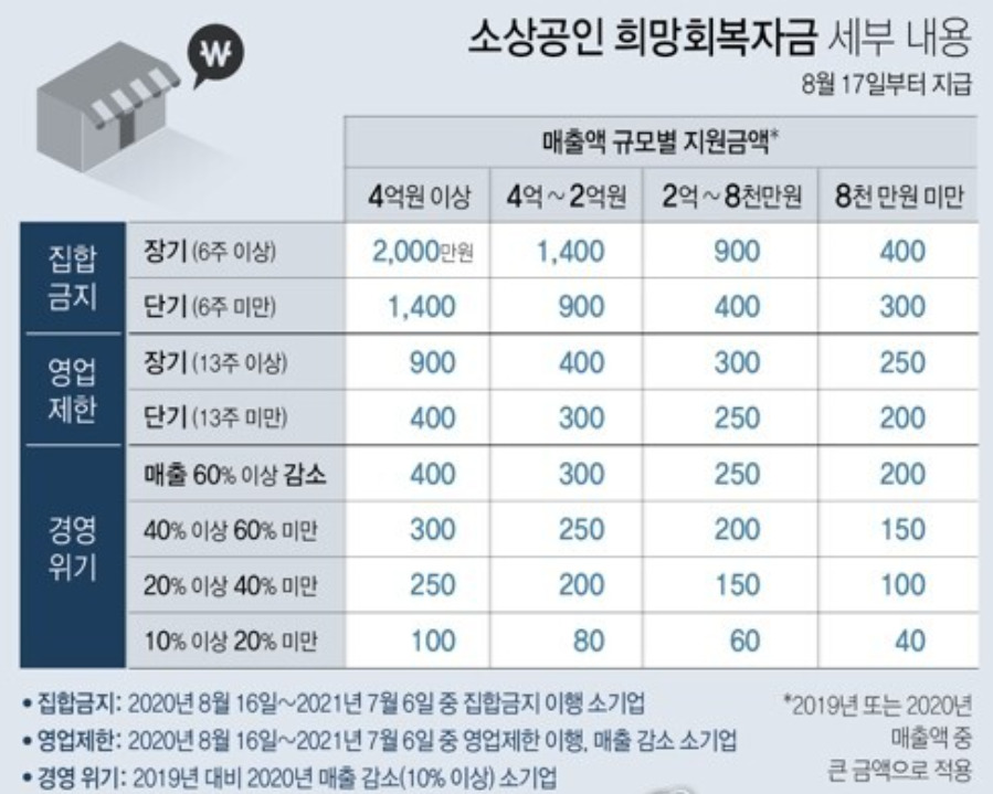 소상공인 희망회복자금의 세부적인 지급 기준과 금액은 정부가 사업 공고 때 맞춰 확정할 예정이다.